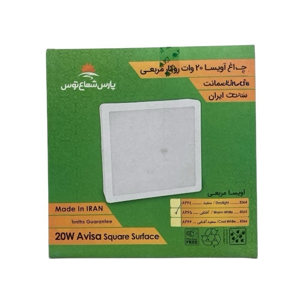 پنل ال ای دی 20 وات پارس شعاع توس مدل آویسا بسته 2 عددی قابل سفارش در سه رنگ آفتابی(زرد) .مهتابی(سفید) .نچرال(طبیعی.یخی