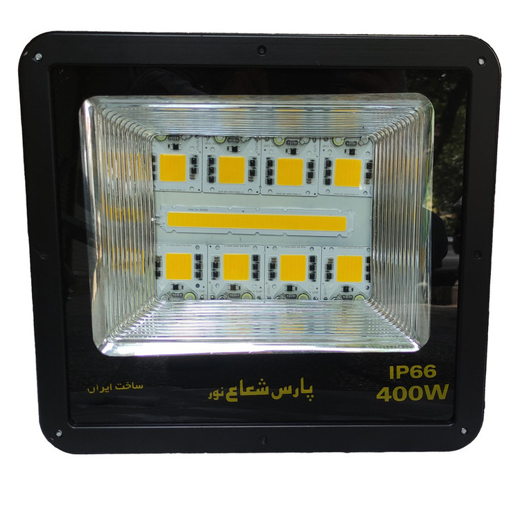پروژکتور ال ای دی 400 وات Led Cob پارس شعاع نور ضد آب و بخار و گرد و غبار.دارای پاور فاکتور کاهش مصرف برق و دماسنج کنترل دمای ماژول IP66