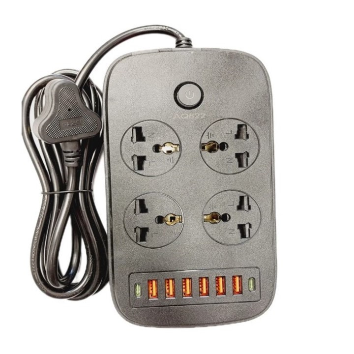 چهار راهی برق فیوز دار 10 آمپری مدل AQ622 دارای 6 عدد پورت USB و 2 عدد پورت تایپ سی با خروجی 5 ولت 5.1 آمپر AUTO می باشد و در قسمت فوقانی چند راهی یک عدد کلید خاموش/ روشن قرار داده شده است تا در هنگامی که نیاز ندارید به راحتی جریان برق را قطع کنید. اگر به قسمت فوقانی نگاهی بیندازید دکمه قرمز رنگ را مشاهده می کنید که فیوز این چند راهی برق می باشد که در هنگام اتصال و عبور جریان بیش از 10 آمپر جریان را قطع خواهد کرد تا دستگاه الکتریکی شما آسیب نبیند. سوکت های اتصال این 4 راهی برق UNIVERSAL می باشد به عبارتی هم دوشاخه معمولی ایرانی و هم سه شاخه و دو شاخه های تیغه ای می توانید به آن متصل کنید. طول سیم این چهارراهی برق AQ622 برابر 3 متر است که جنس کابل از مس و روکش آن PVC می باشد ته به راحتی پاره و یا آسیب نبیند.