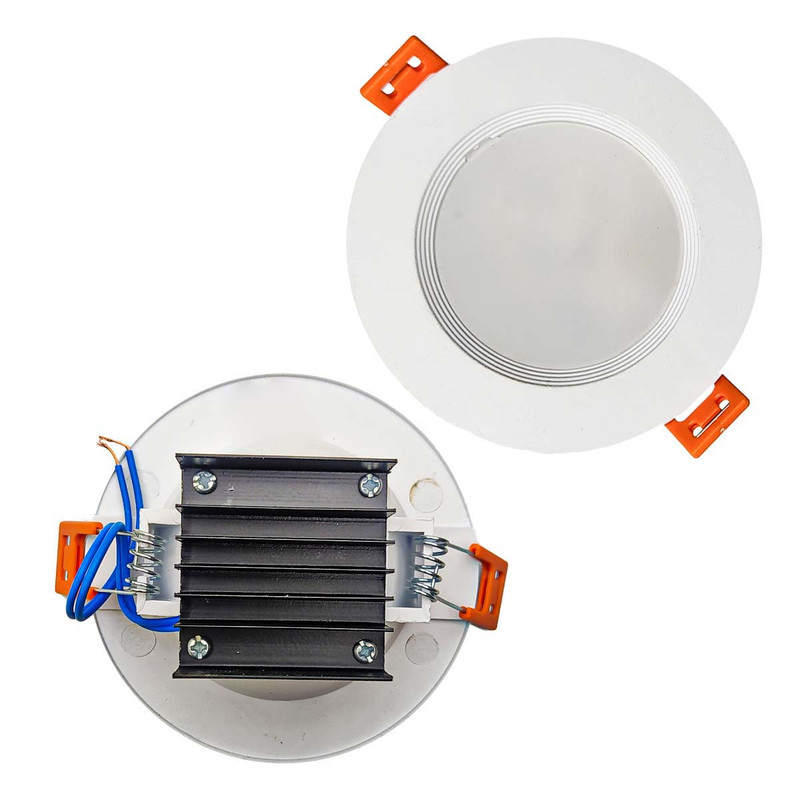 چراغ هالوژن طرح روناک مدل شاهچراغ در رنگ نور های آفتابی-مهتابی-یخی (یخی رنگی است بین آفتابی و مهتابی)عرضه میشود. این چراغ هالوژن با فنری قدرتمند و با کیفیت و برچسب انرژی A+ گزینه کم مصرف و مناسبی برای استفاده روز مره است. قطر فنر تا فنر محصول 70mm می باشد(سایز برش). امتیاز عالی این محصول نسبت به سایر کالا های مشابه بی کیفیت و جود هیت سینک آلومینیوم به جای پلاستیک است که محصول رو در برابر گرما و آسیب مقاوم میکند. محصولاتی که هیت سینک آلومینیوم ندارند معمولا دارای قیمت پایین تر هستند، عمر واقعی خود را طی نمی کنند و پس از مدت کوتاهی به دلیل عدم توانایی دفع دمای چیپ ال ای دی نورشان کم می شود و به مرور زمان از بین می روند. بهترین مکان مناسب برای این چراغ هالوژن، سقف هایی با ارتفاع 2 و نیم تا 3 متر هستند تا نور بیشتری به محیط برسد