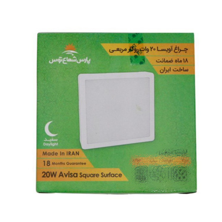 توان مصرفی چراغ ۲۰ وات است. ابعاد چراغ ۴۳*۱۸۰*۱۸۰ است. جنس بدنه از نوع پلاستیک ABS می باشد. در مدارهایی که دیمر وجود دارد قابل استفاده نیست. در محیطهای با بخار آب یا امکان نفوذ آب استفاده نشود.