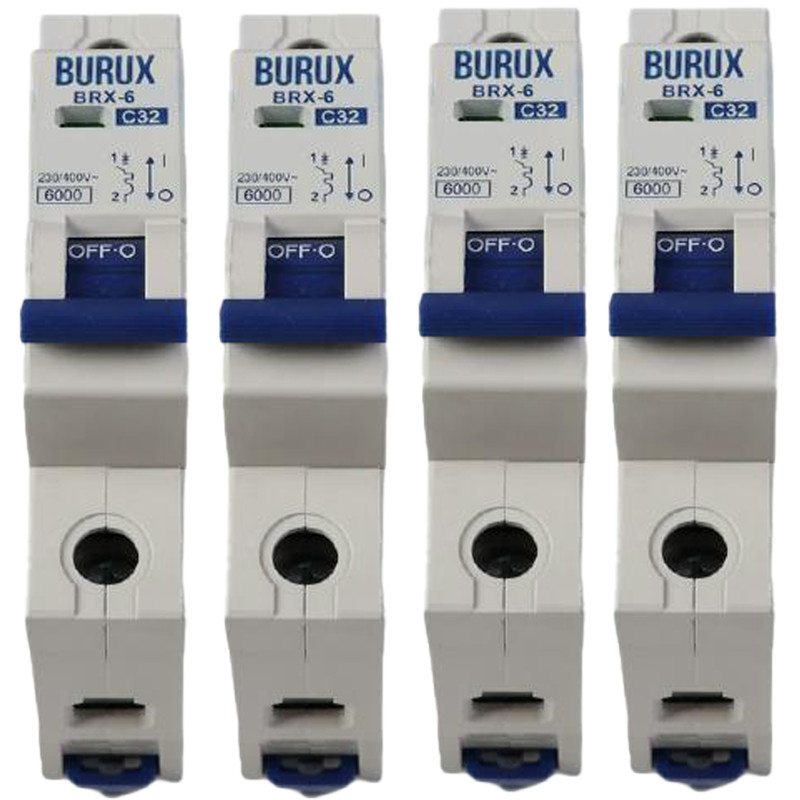 فیوز مینیاتوری تک فاز 32 آمپر بروکس مدل BIG8706 بسته 4 عددی