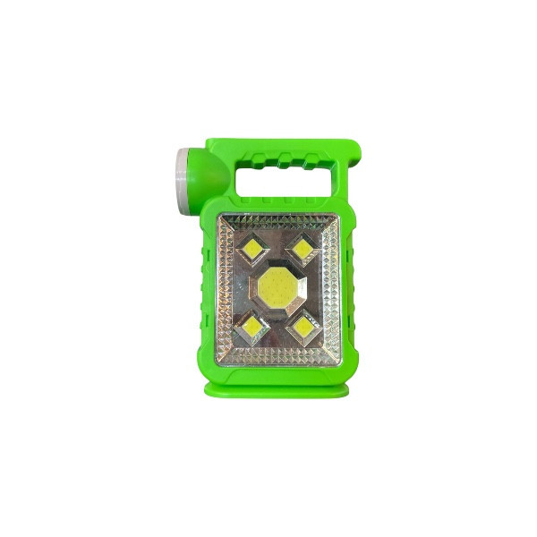 این نورافکن دستی خورشیدی شارژی دارای دو حالت نوردهی ( نورافکنی پخش و چراغ قوه ای متمرکز ) است. این چراغ دارای باتری داخلی شارژی با قابلیت شارژ از طریق صفحه خورشیدی و کابل USB میباشد. ال ای دی های محصول از نوع COB کم مصرف با نور سفید است.