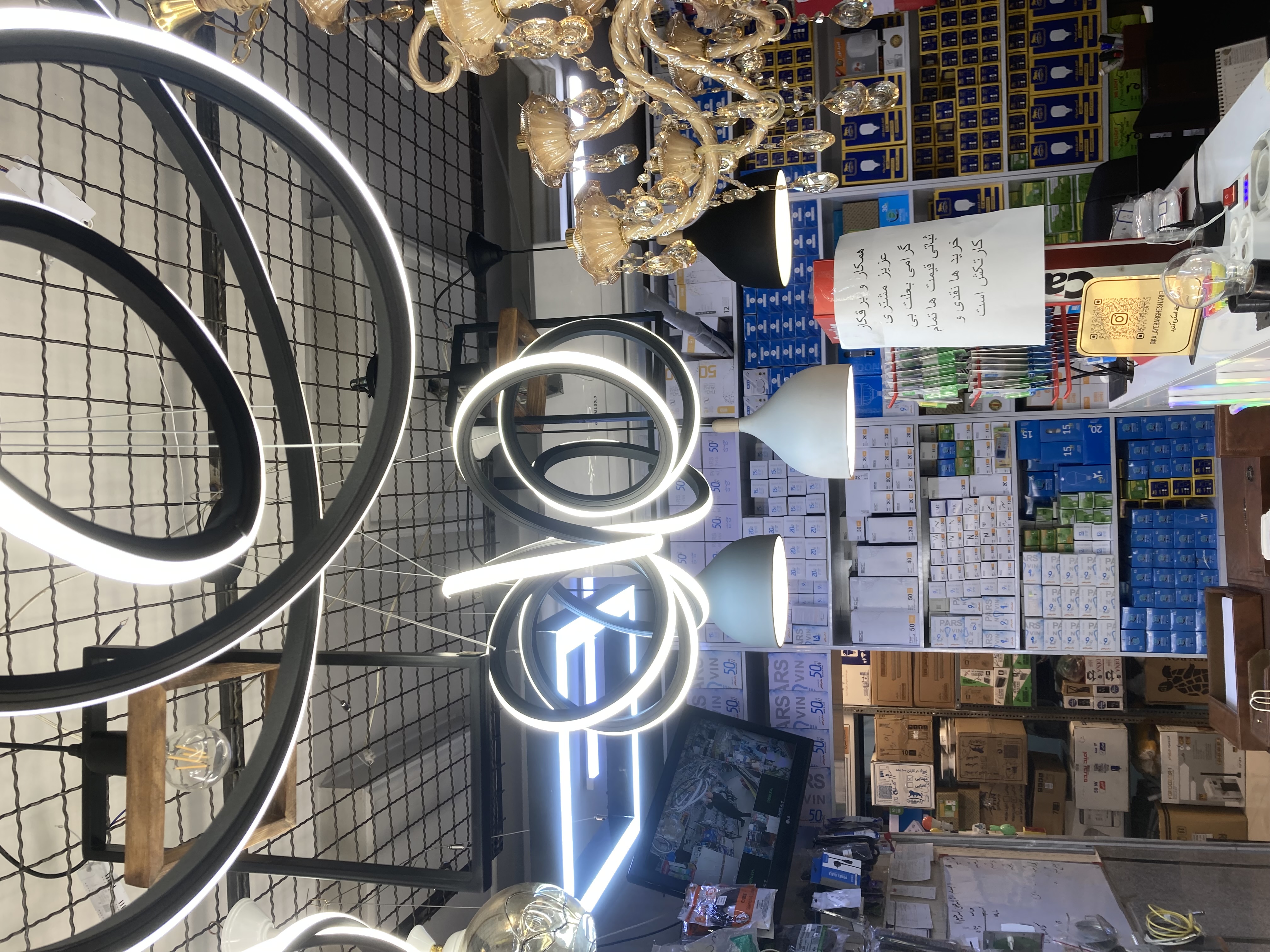 پخش و تولیدی لوستر فلکسی سه حلقه دایره مربع سه طبقه ریموت دار سه حالته گارانتی دار کالاب برق شریفی مشهد